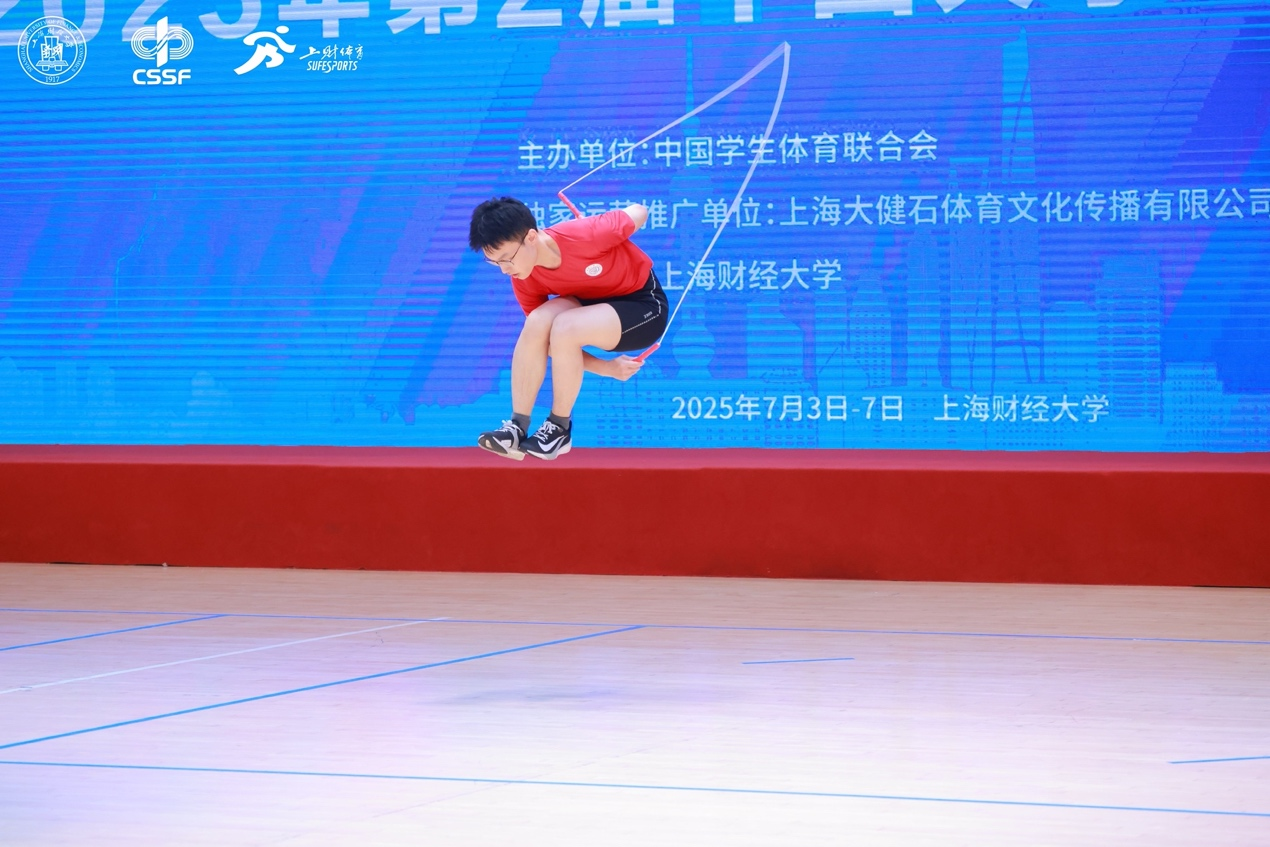 2025年7月4日至7日,第二届中国大学生跳绳锦标赛在上海财经大学隆重举行。本次赛事由中国学生体育联合会主办,吸引了来自全国各地20个省、自治区、直辖市的60所高校,共计700余名选手参赛。比赛分为甲组(普通组)、乙组(高职高专组)、丙组(高水平组)3个组别,设有计数赛、花样赛2个大项,竞争激烈,精彩纷呈。