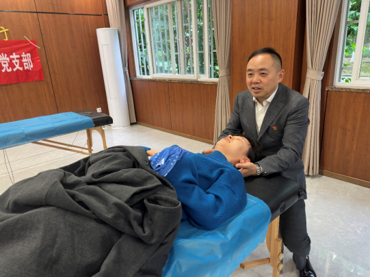 讲座最后设置了体验环节,师生们踊跃上前互动体验。医护人员现场演示了肩颈穴位按摩、各关节功能锻炼操等简易康复技巧,并现场给老师同学们进行了义诊。有学生表示:今天不仅学到了实用的健康知识,更好的面对以后自身在运动中的损伤问题,还感受到传统医学的独特魅力。