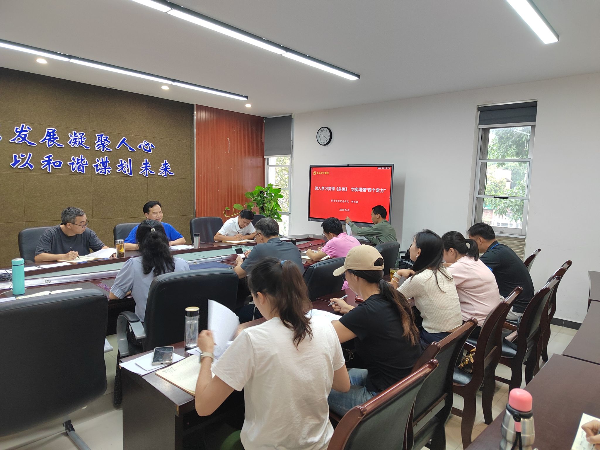 2024621日上午,为扎实推进主题教育,深入学习贯彻习近平新时代中国特色社会主义思想,进一步巩固党学习教育成果,不断提高党员干部的党性修养,凝心聚力促发展,91国产 党委明兴建书记以“深入学习贯彻《条例》  切实增强“四个定力”为主题讲授了专题党课。学院领导班子成员、党委委员、纪委委员、各系(中心、室)主任、各党支部书记、党委组织员等近20人参加会议。