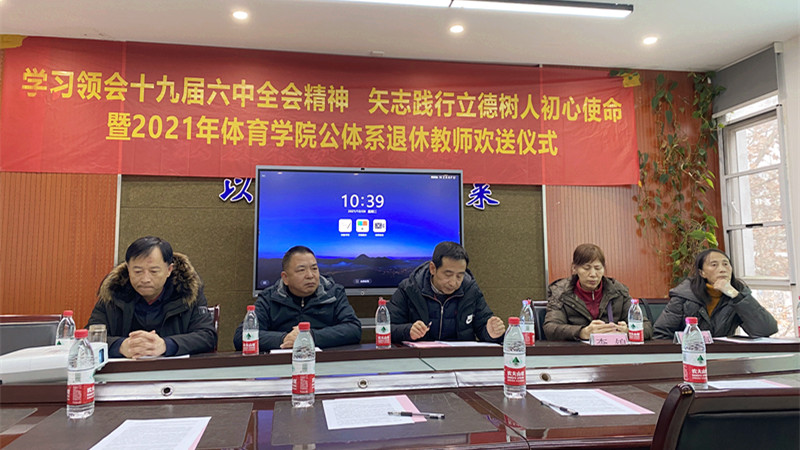公体系的李锦、李小宁、纪建敏、赵梅四位老师今年先后退休,专门为他们举行欢送仪式。倾尽丹心育桃李,奉献韶华铸师魂,青春数十载,四位老师始终深耕于体育教学第一线,他们为学校学院的发展和学生的成才贡献出自己的力量。学院党委书记邱荣富和公体系主任冉锋分别在活动开始为退休教师致欢送词和感谢词,感谢他们为学校和学院做出的贡献,衷心希望他们退而不休,在翻开新的人生篇章的同时,常回家看看,继续为学院的发展献言献策、发挥余热。