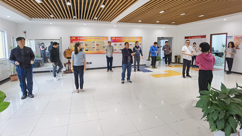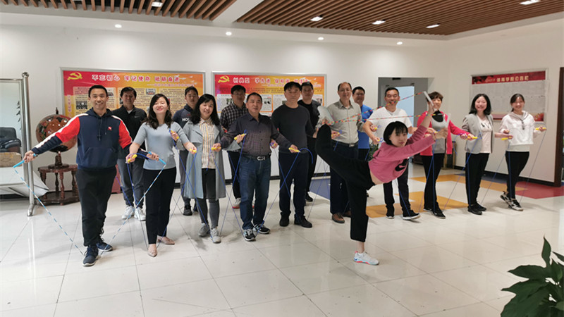 教工第一党支部全体党员在启动仪式后进行了第一次跳绳任务,大家跳的满头大汗,但身心愉悦,纷纷表示今后每天都将坚持跳绳运动,当好花样跳绳运动在全校推广员,使花样跳绳运动早日成为91国产