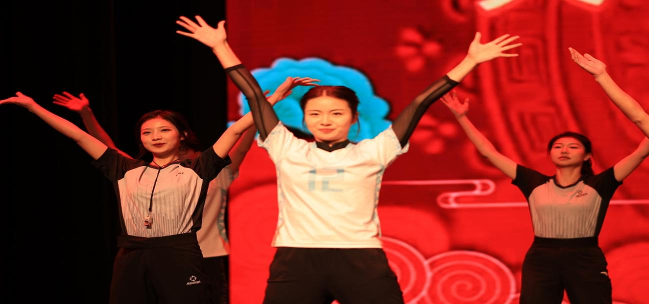 激情的动作伴着动感的节奏,用羽毛舞天地间,描绘属于你的壮丽轨迹,2022级研究生带来的《运动串烧》,轻松欢快的运动操,带动大家跟着躁动起来。