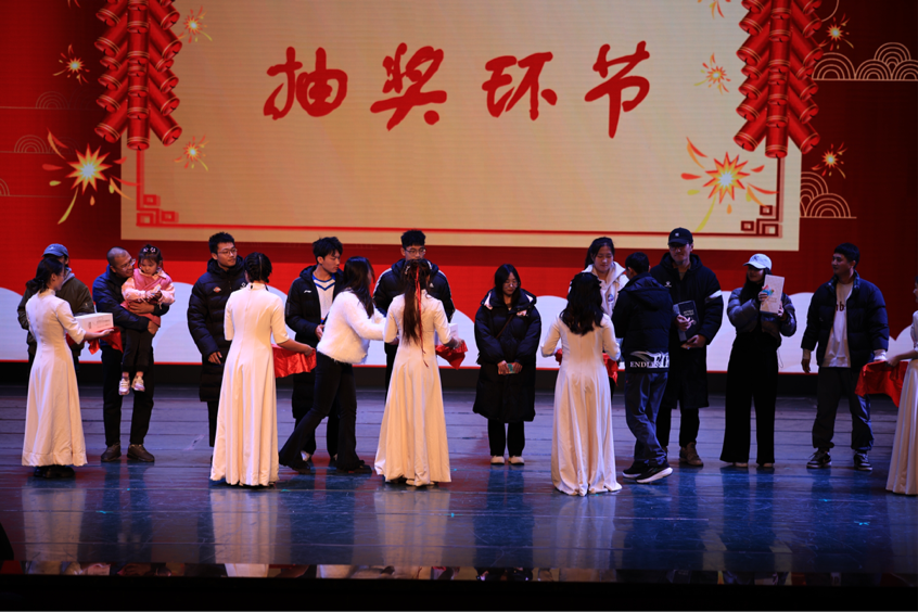 抽奖环节可谓是精彩绝伦,观众们热情满满,整场联欢会设置三个抽奖环节,将抽出三等奖10名,二等奖6名,一等奖3名。抽奖嘉宾由在职教师代表、学生代表和离退休老师代表组成。