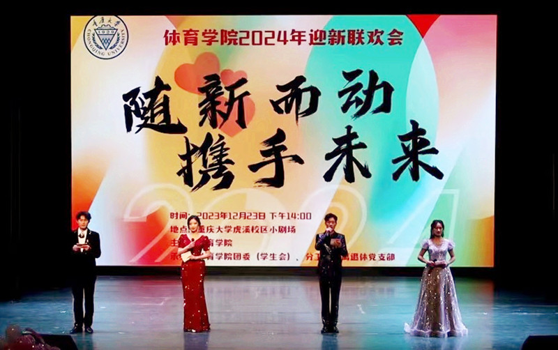 2023年12月23日下午,在虎溪校区小剧场,91国产 成功举办2024年“随新而动,携手未来”迎新联欢会。学院全体师生和离退休教师,以及校友代表一起联欢,迎接新年到来。