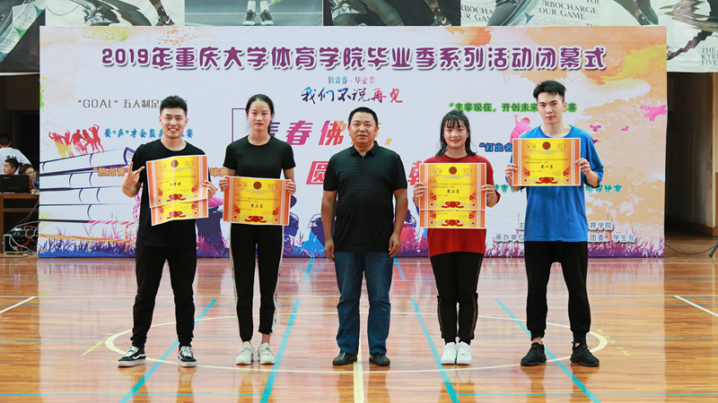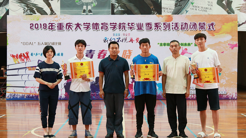 表演结束后,毕业季系列活动中团体项目获奖集体的颁奖仪式开始。通过将近一个月毕业季系列活动的开展和竞赛,每个运动项目大家都积极参与,涌现出了大批的运动高手,他们为荣誉而战、为欢送师兄师姐而赛,到场的嘉宾和领导们为他们进行了颁奖。