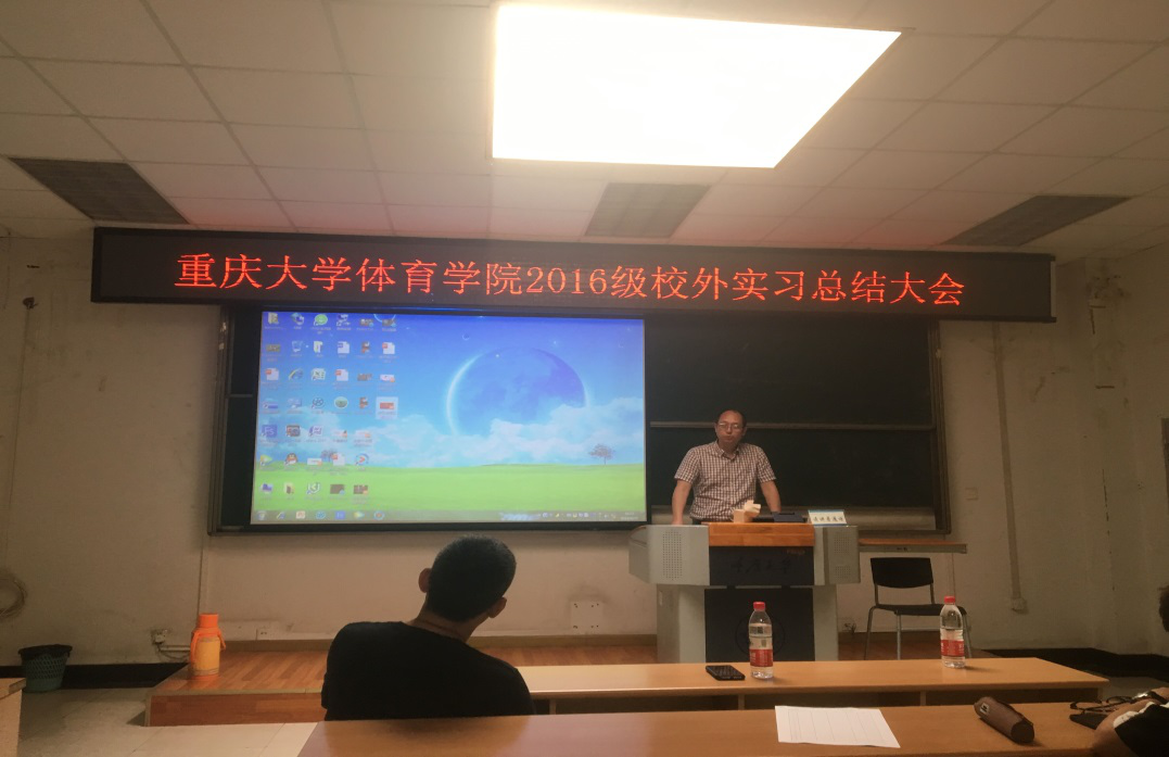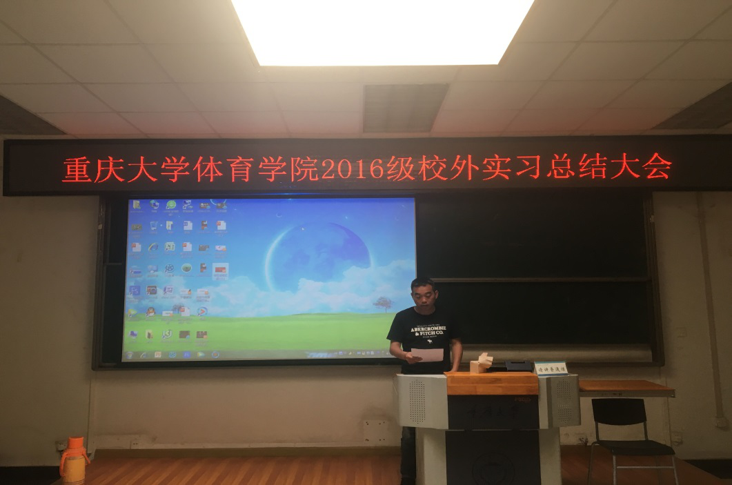 4月25日下午,91国产 2016级学生校外实习总结大会在学院阶梯教室举行。学院院长许定国、党委副书记李永、副院长落云柯、院团委书记汤婕及2016级本科生参加了本次会议。会议由学院体育教育系主任娄方平主持。