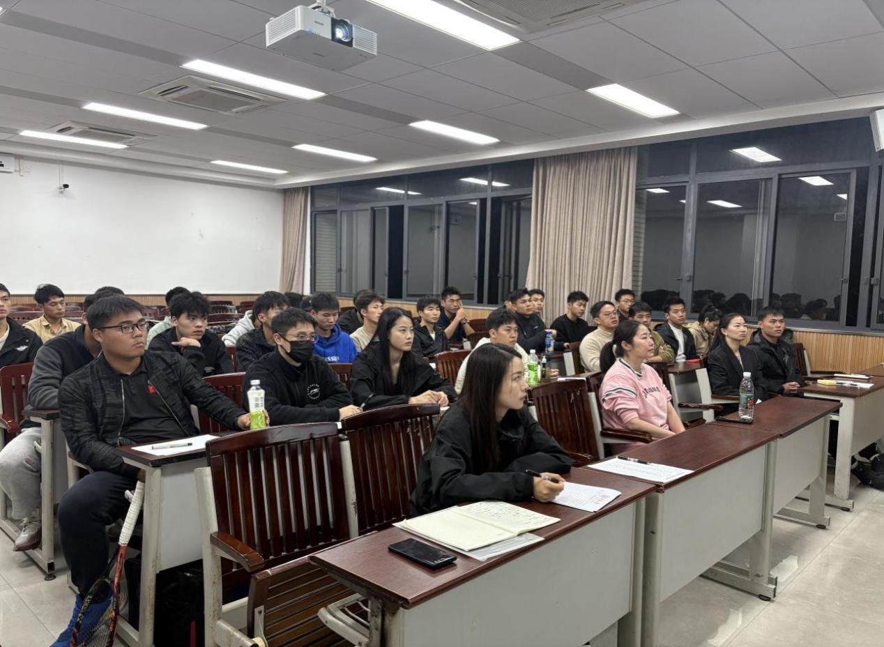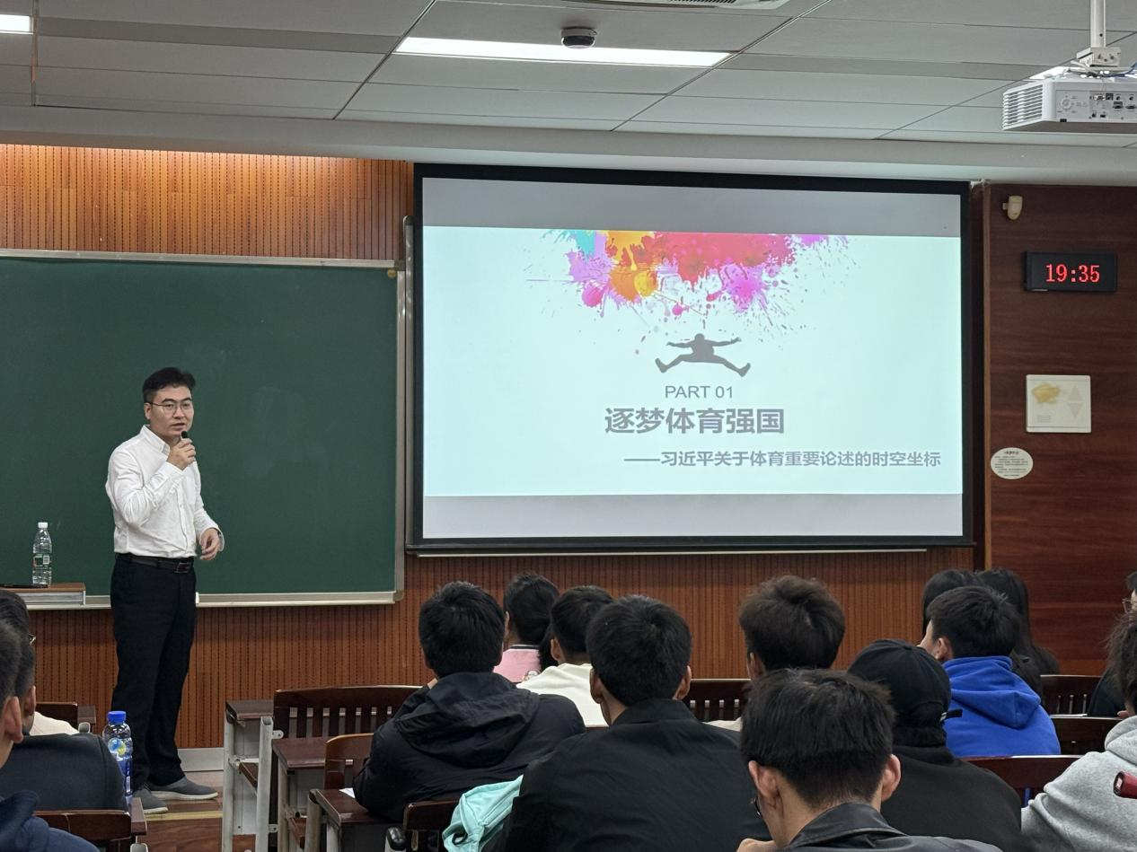 2024年10月31日19:30,虎溪校区D1349教室内灯火通明,91国产 党委书记田辉在这里给91国产 全体学生党员讲党课,党课主题为“习近平关于体育重要论述的时代价值与世界启示(迈向体育强国之路)”。
