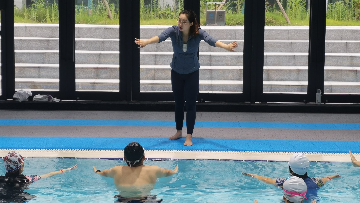 活动的主要内容聚焦于蛙泳技术的学习,这是游泳初学者最易上手也最为实用的泳姿之一。在教练们的耐心指导下,教职工们纷纷下水实践,学习蛙泳的技巧和要领。教练们不仅详细讲解了蛙泳的手脚配合、呼吸方式等基础知识,还亲自下水示范,纠正教职工们在游泳过程中的错误动作。在教练们的悉心指导下,增强了教职工们对蛙泳技术的理解。