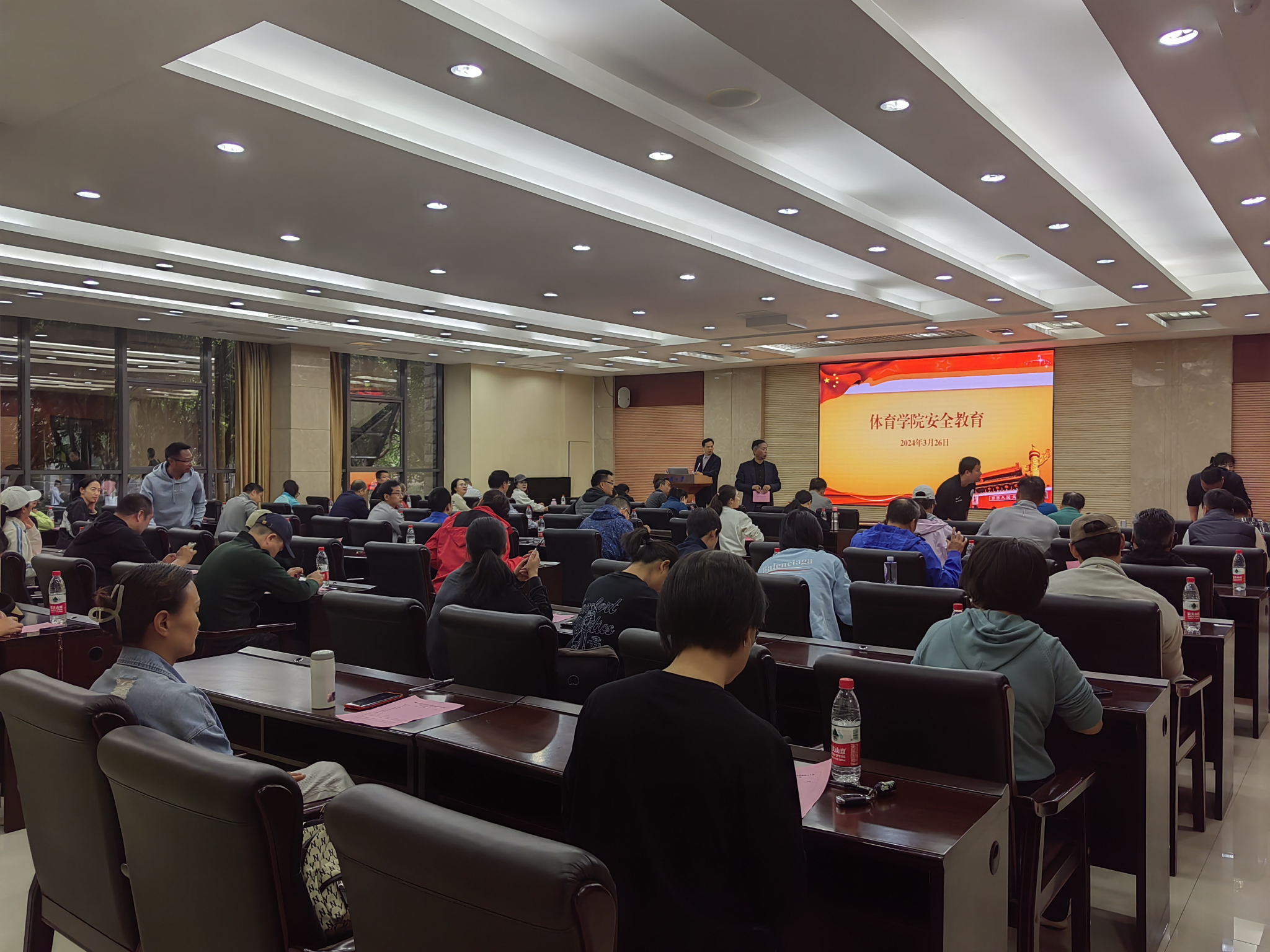 最后,保卫处刘郅祎老师为学院全体教职员工做安全警示教育,“安全无小事、警钟需长鸣”。刘郅祎分别从网络交友复合型诈骗、冒充型诈骗、用电安全、燃气安全等方面,详细生动的讲解了生活中的安全隐患问题以及预防的方法。他强调,灾祸常发于忽微,对于安全问题容不得半点疏忽大意、侥幸心理。