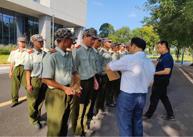 随后,学院领导为2023级全体同学发放慰问品,对各位新生表达浓浓的慰问之情,同学们以标准的军礼向领导和老师们表达了深深的谢意。