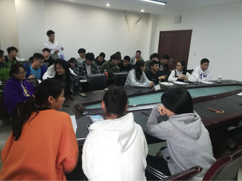 首先,汤婕给各班委安排座位,将各年级相同职务的班委安排在一起组成小组,这样便于会议的探讨。其后,汤婕向参加这次会议的成员介绍会议流程。让各职位的班委讨论自己的工作(至少五条),再由此职位2020级的班委进行阐述,2018、2019级的班委补充。