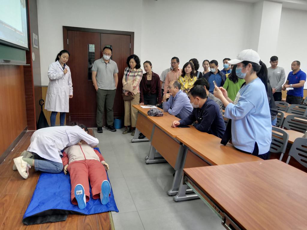 校医院朱伟晶医生所做的题为《心肺复苏急救培训》的知识讲座。讲授学习过程中,老师们认真聆听,主动提问题,积极参与实际操作。通过理论讲解和实际操作,大家对“心肺复苏”的基本知识有了系统了解,并较好地掌握了胸外心脏按压、口腔异物清理、开放气道、人工呼吸等基本技能。