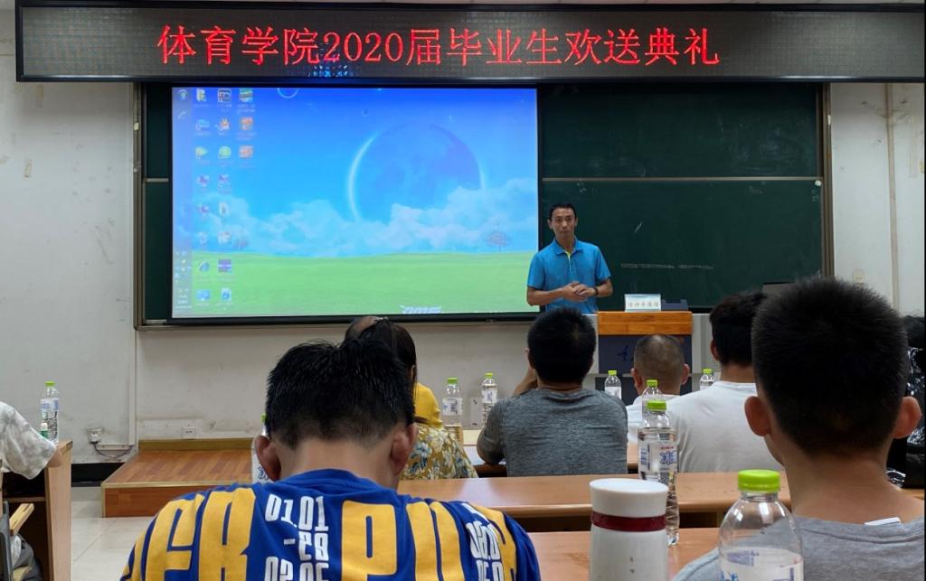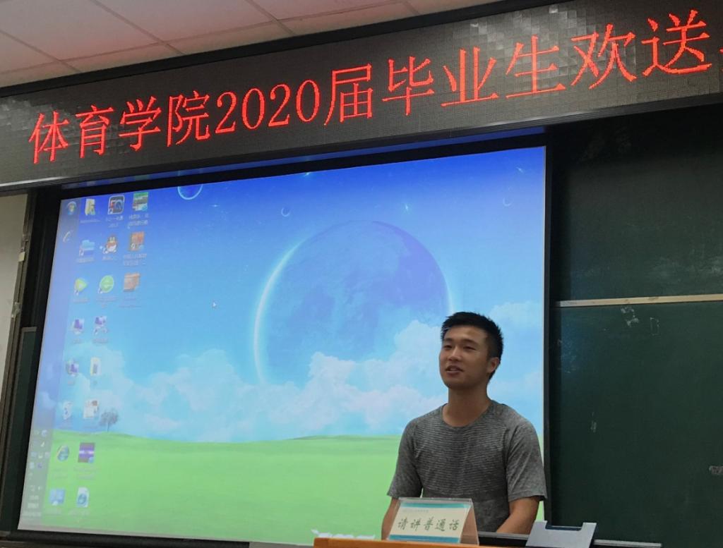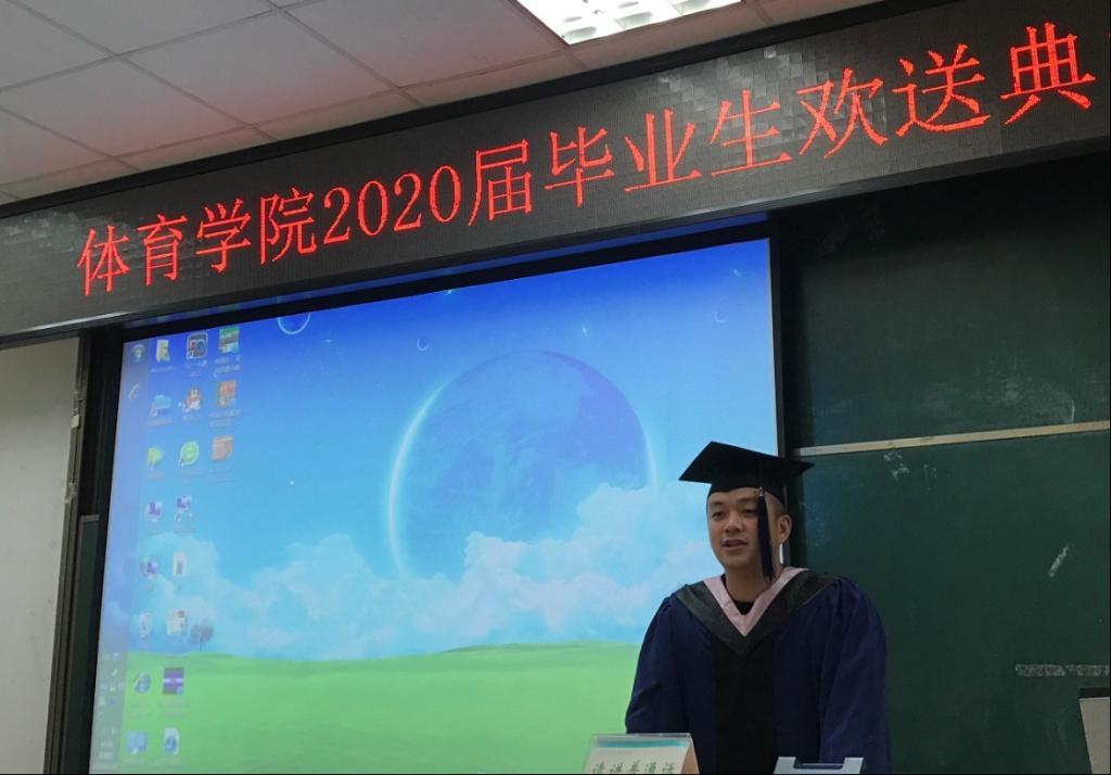 李宁老师用一首由《敢问路在何方》改编的歌曲给毕业生们送上了最诚挚的祝福。他希望同学们能够在未来的人生征途中展现体育人的不畏艰难迎难而上的优良品质,取得更高更好的辉煌与成就,也希望同学们常回母校看看。