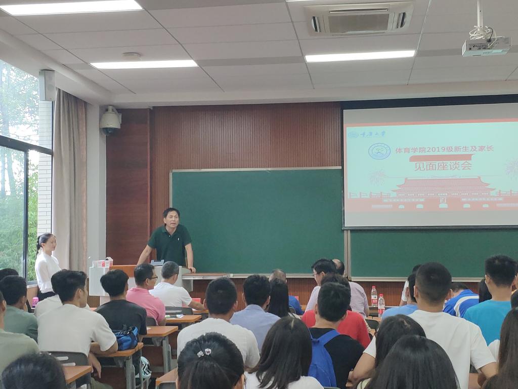 组织举行了2019级新生及家长见面会。学院党委书记邱富荣,院长许定国,党委副书记李永,副院长落云柯、潘建华,研究生导师代表钟璞教授、刘磊矗教授、侯岗副教授、严小波副教授,院长助理黄成胤,组织员陈亭,辅导员尚家敏以及2019级全体研究生与本科生和新生家长代表参加本次见面会。会议由院团委书记汤婕主持。