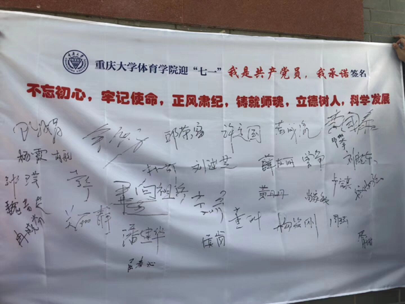 党委还组织举行了新党员入党宣誓老党员重温入党誓词。党员同志面对鲜红的党旗,庄严地举起右手,庄严誓词,党员同志们的思想再次得到洗礼和升华。接着大家在印着“我是共产党员,我宣誓:不忘初心,牢记使命,正风肃纪,铸就师魂,立德树人,科学发展”的布幅上进行了签名。