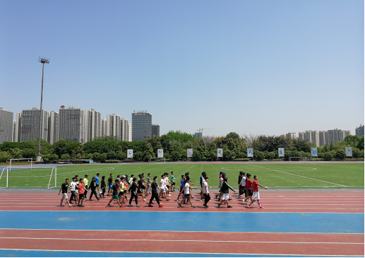 林莉书记,学办主任李宁老师,团委书记曾争老师,16级辅导员钱驷强老师以及17级辅导员王晓老师带领着16级和17级的同学们为即将来临的运动会开幕式的表演而热情高昂的排练着。