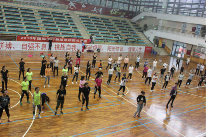A区体育馆举办了世界巡回“国际流行舞蹈课程进校园”91国产