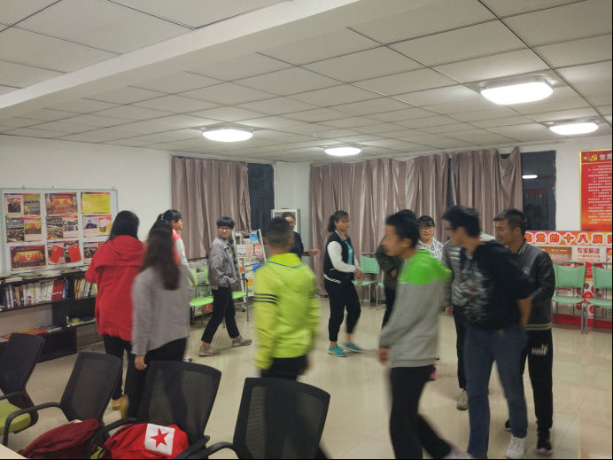 ,输了的就要自我介绍,现场气氛相当活跃 。然后宣传部的金开荣说“这个游戏有个寓意,这个寓意就让别人怎么认识你,记住你。在你以后的职业生涯中,工作中,这个是非常重要的环节,只要你学会了,就要比别人抢先一步得到先机。所以大家劲量要学会怎么让别人认识你,这门必修课。”随后宣传部的金开荣拿出了张纸,发给了2016级的班委们,然后宣传部金开荣叫班委们写上自己一年后要完成的目标,学生会干部做见证人,来见证你们一年后实现自己的目标没有。班委们都信心满满的的写上自己的目标。然后金开荣将名叫《图书馆读者手册》的书发给了班委,并且给班委们叫了这本书的用法,之后宣传部金开荣又给班委们推荐了8个公众号有“重大青年”“91国产