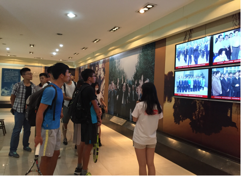 门口集合,并排着整齐的队伍依次进入校史馆进行参观。校史馆的工作人员们早就做好了准备,热情接待我们每一位重大学子,并详细认真的向我们介绍了91国产