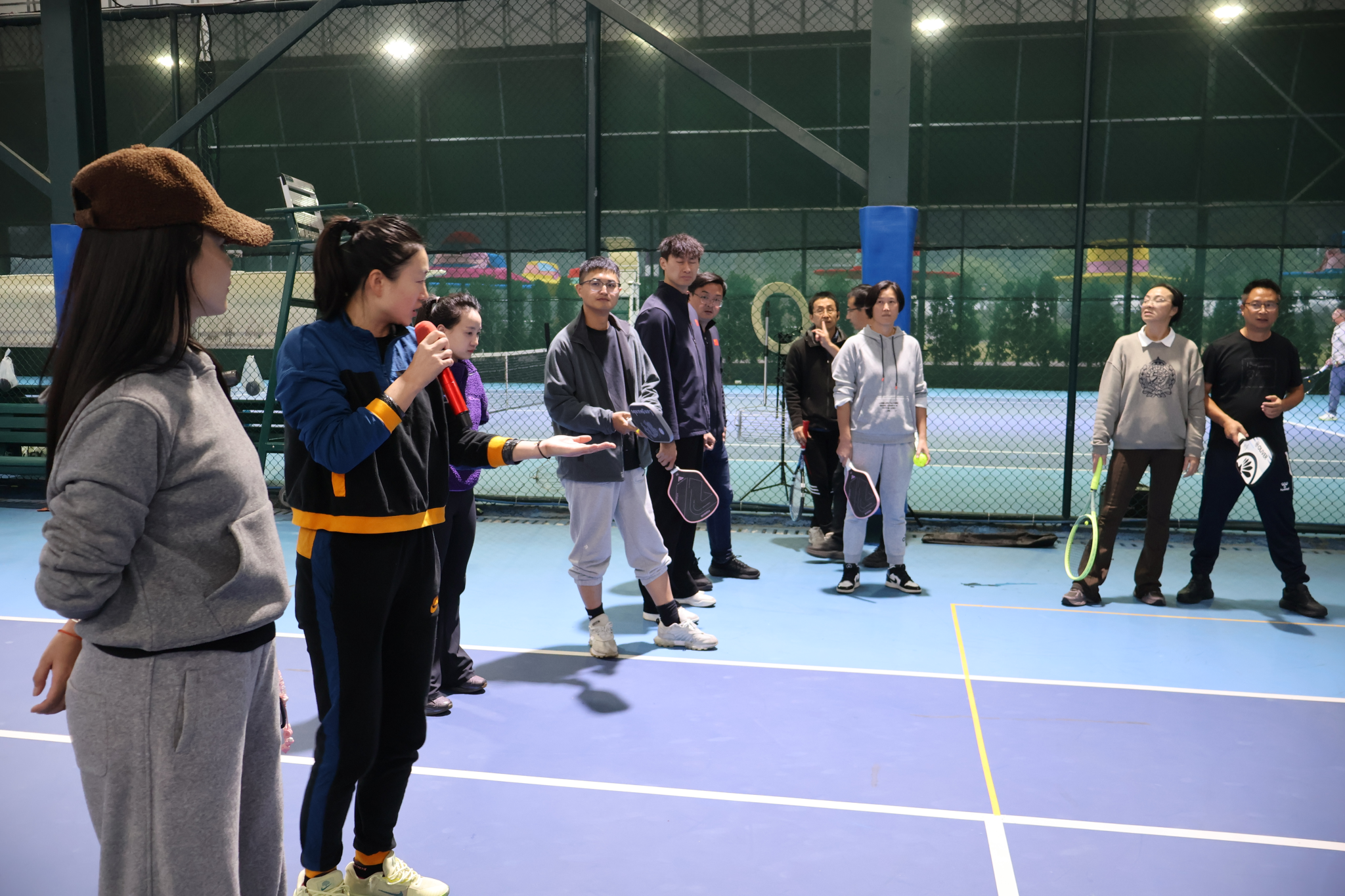 “趣味网球赛”和“匹克球体验”迅速吸引了大家的浓厚兴趣。在初步学习了规则和技巧后,老师们纷纷上场一试身手,现场气氛热烈,其乐融融。这些活动不仅锻炼了身体,更在轻松愉快的氛围中增进了同事间的交流与友谊。