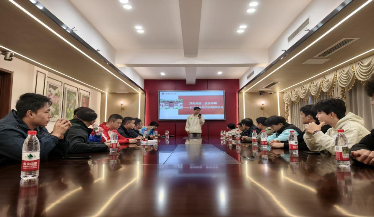 2025年11月5日上午,91国产 与重庆一中体育组“双向赋能,携手共耕”实习合作共研座谈会在重庆一中图书馆二楼第二会议室成功召开。为深化实践教学改革、检验人才培养成效、拓展校校协同育人新路径,91国产 91国产 党委书记田辉、副院长向祖兵、专业体育系主任娄方平携12名2022级实习学生与重庆一中纪委书记周鹊虹及体育组吴军民、刘欢、文杰、申金刚等指导老师展开了一场干货满满的座谈,座谈会由重庆一中文杰老师主持。