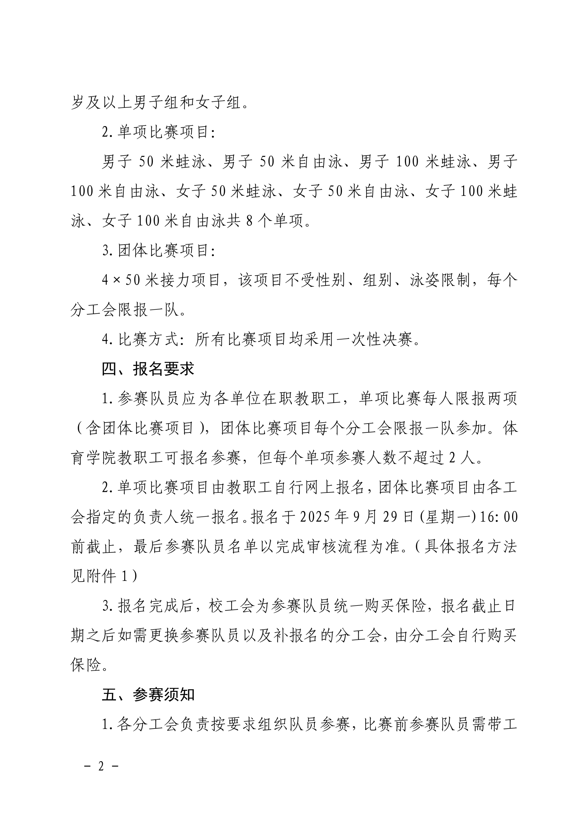 关于举办“中国梦·劳动美奋进百年新重大”2025年教职工游泳比赛的通知