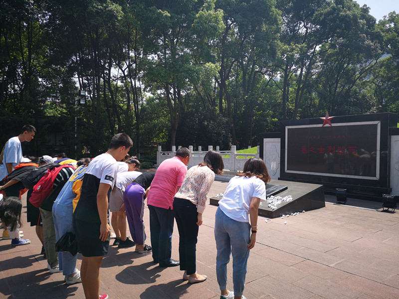 大家首先来到歌乐山烈士陵园11.27殉难烈士墓前,在邱荣富书记的带领下,向烈士墓三鞠躬并怀着沉痛的心情绕墓一周,表达对红岩英烈崇高的敬意和深刻的缅怀之情,随后大家参观并了解了烈士们的生平事迹。邱书记教导大家要学习红岩英烈勇敢无畏、不惧牺牲、宁折不屈的革命精神,今天大家站在这里纪念先烈,是为了激励我们更好的学习,将来为祖国做出应有的贡献。