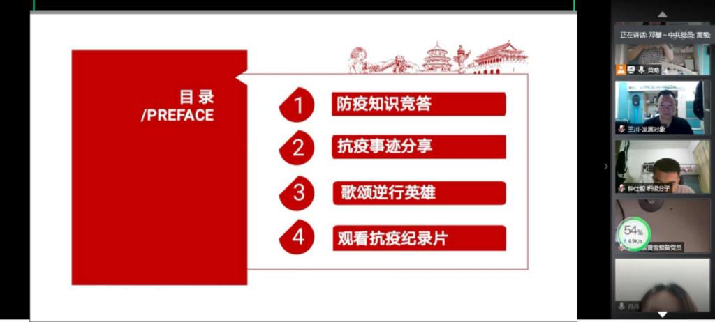 研究生党支部通过腾讯会议线上举办了主题为“疫去春来颂逆行英雄,有为青年赴时代征程”的特色党团活动。
