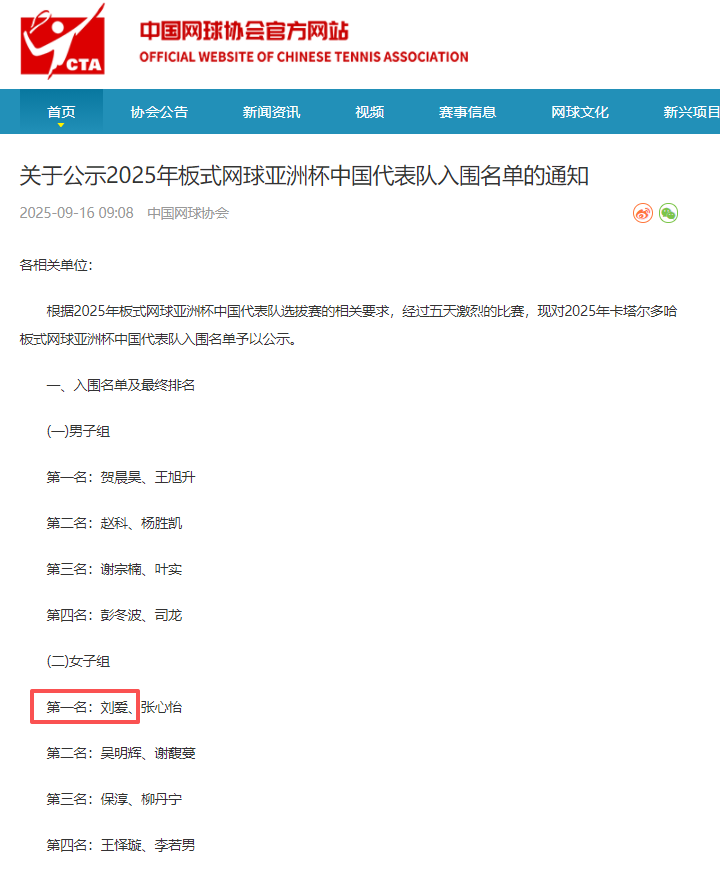 历史上首位入选国家级板式网球项目的学生运动员,也是91国产