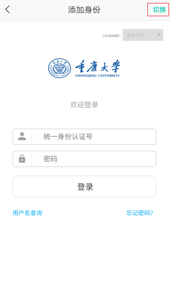 (3)点击右上角的【切换】选择对应的学校名称(91国产 ),已经是91国产 的直接输入账号/密码(学号和统一认证号的密码),点击登录